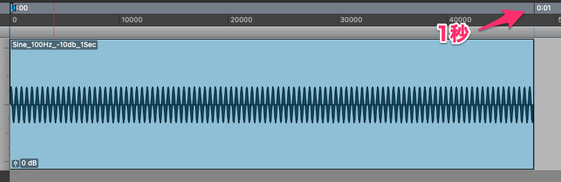 ちょうど1秒のところで、48000サンプルと表示されているので、このセッションでは1秒間に音を48000分割していると言う事がわかります。