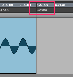 ちょうど1秒のところで、48000サンプルと表示されているので、このセッションでは1秒間に音を48000分割していると言う事がわかります。